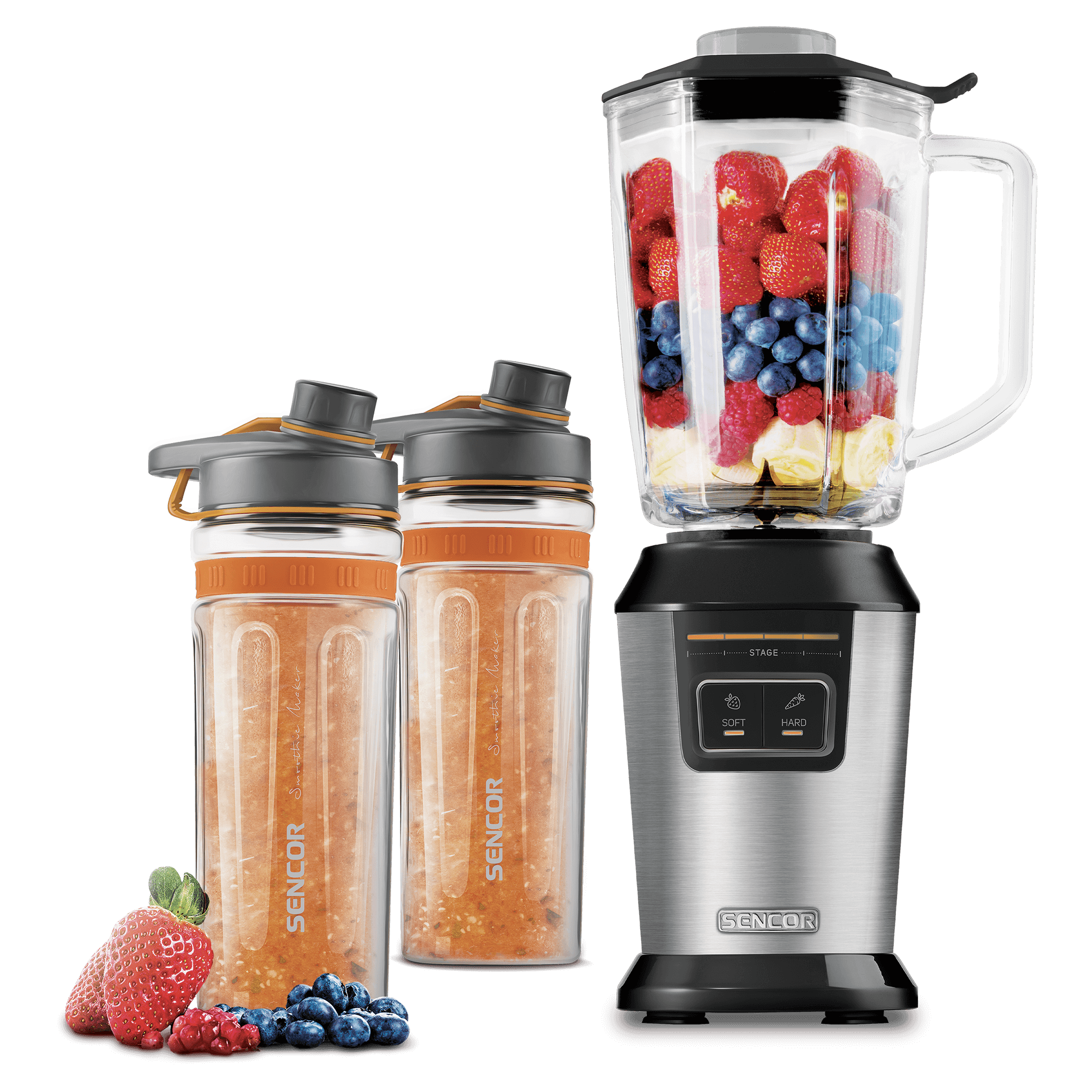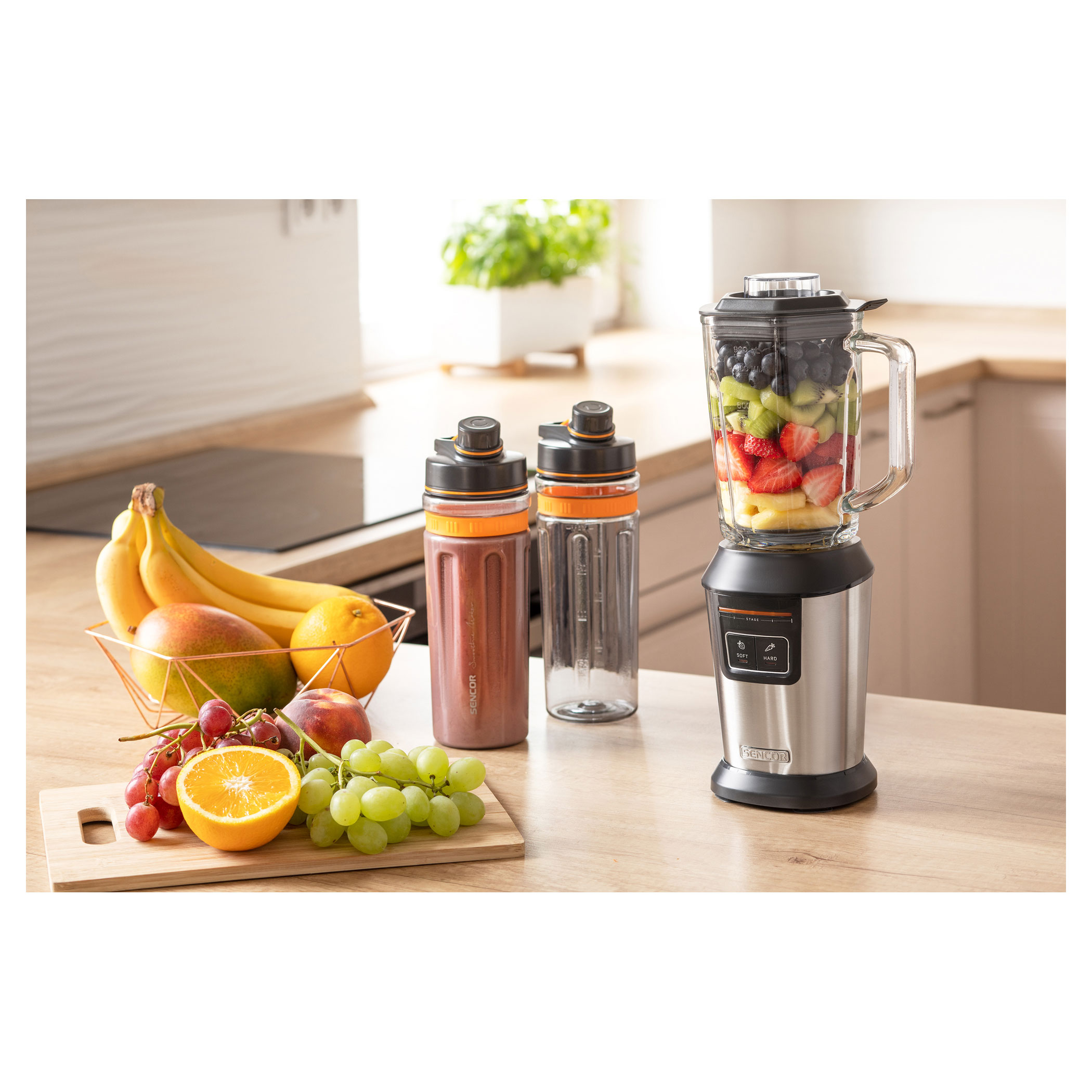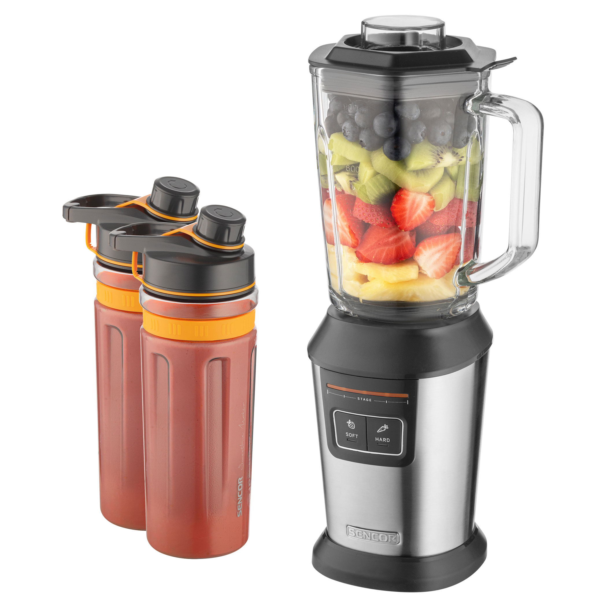 SOFT за леки коктейли (плодове/зеленчуци като ягоди и домати и др.) и HARD (за плодове/зеленчуци като ананас и морков)