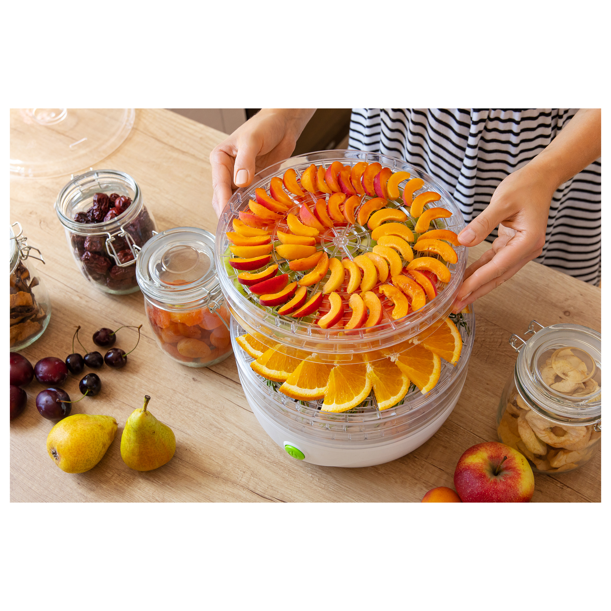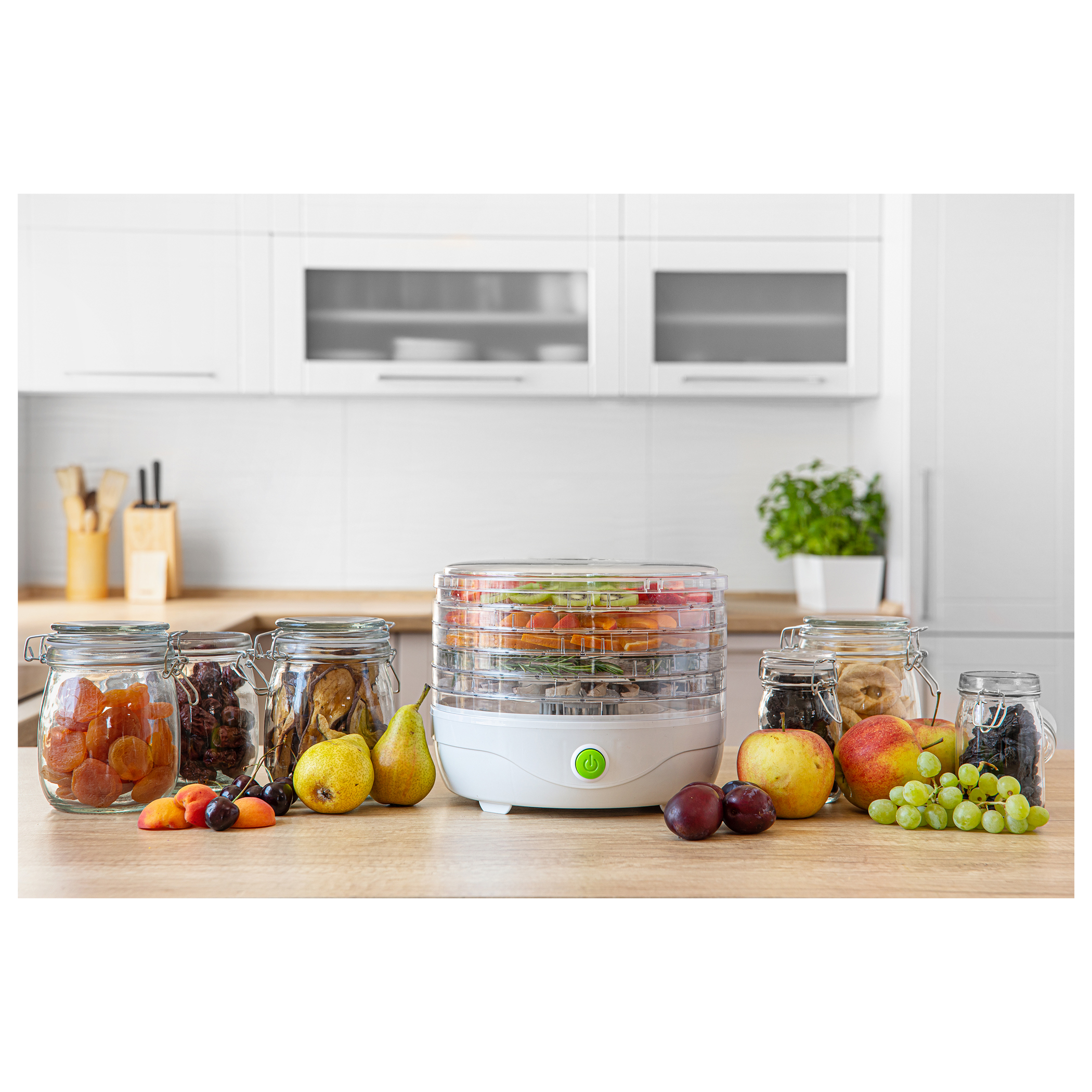 Прозрачният капак и поставки позволяват процеса на сушенето да бъде проследяван по всяко време.