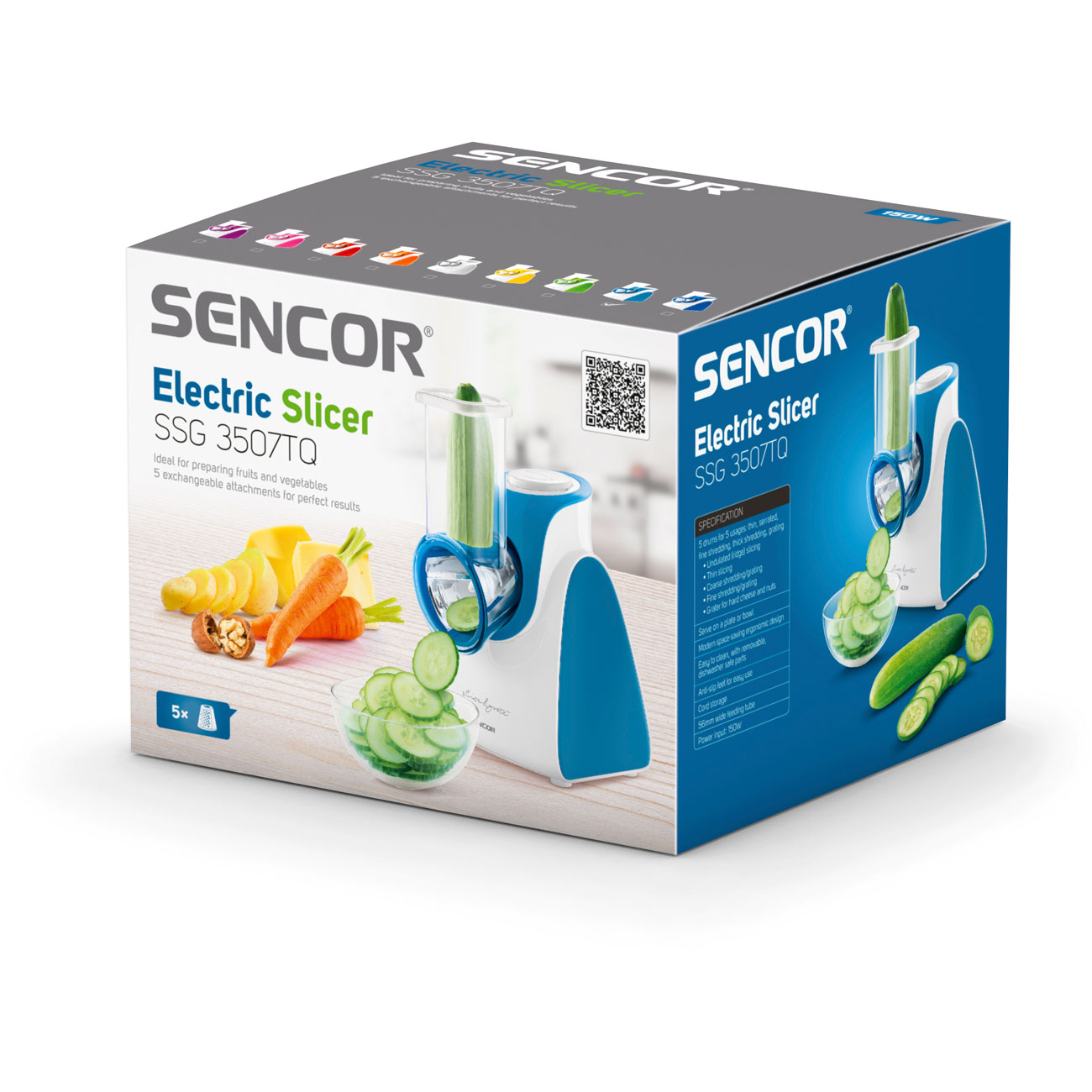 Предоставени аксесоари: 5 подвижни приставки за перфектни резултати: Нарязва прави резени, вълнообразни резени, грубо ренде, фино ренде, много фино ренде