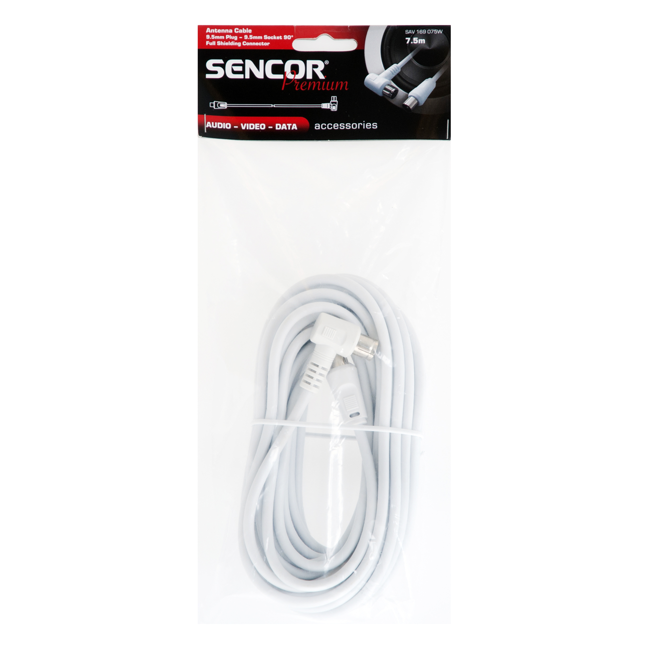 Коаксиален кабел за антена, напълно екраниран, конектор преходник 90°, дължина 7,5 м, бяло