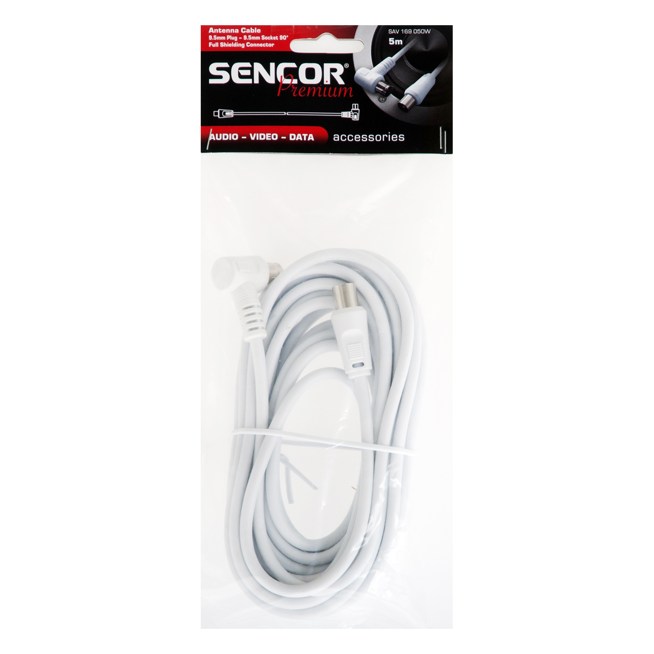 Коаксиален кабел за антена, напълно екраниран, конектор преходник 90°, дължина 5 м, бяло