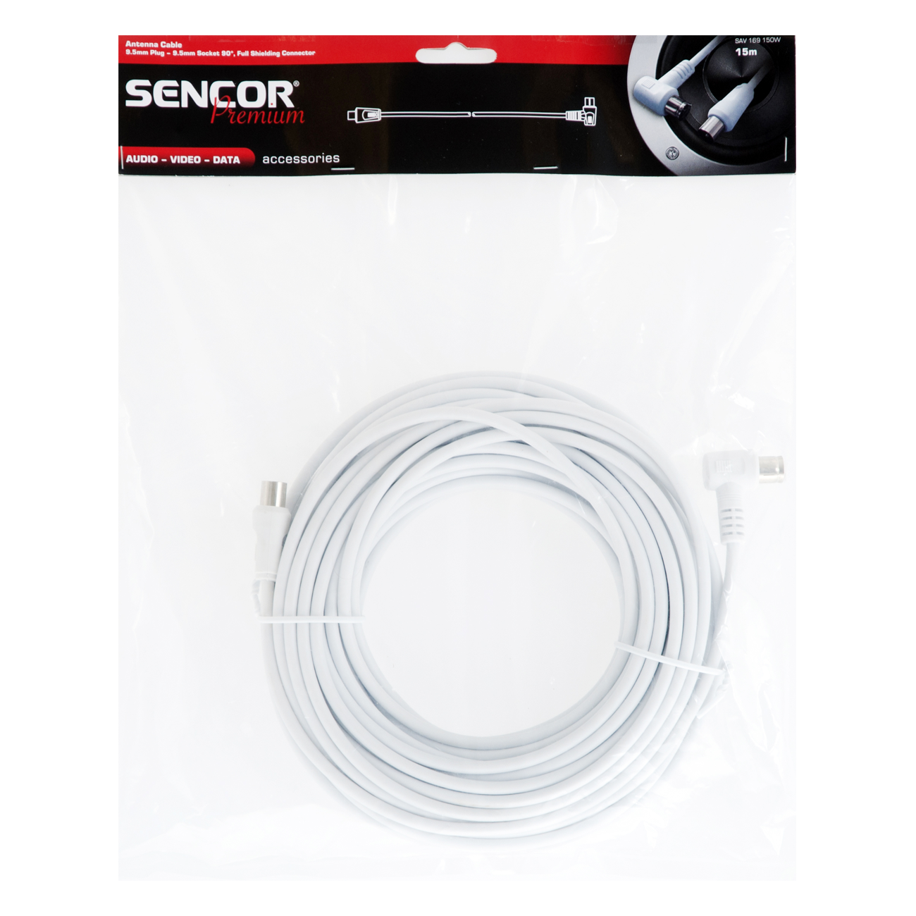 Коаксиален кабел за антена, напълно екраниран, конектор преходник 90°, дължина 15 м, бяло