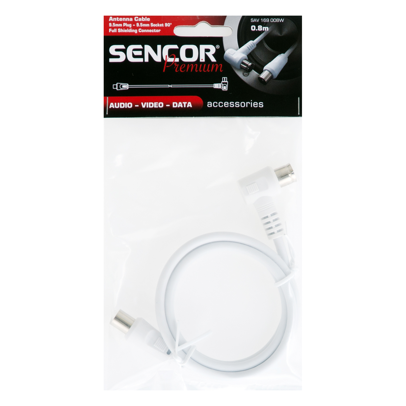 Коаксиален кабел за антена, напълно екраниран, конектор преходник 90°, дължина 0,8 м, бяло