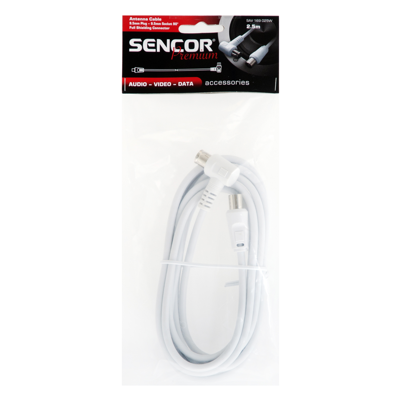 Коаксиален кабел за антена, напълно екраниран, конектор преходник 90°, дължина 2,5 м, бяло