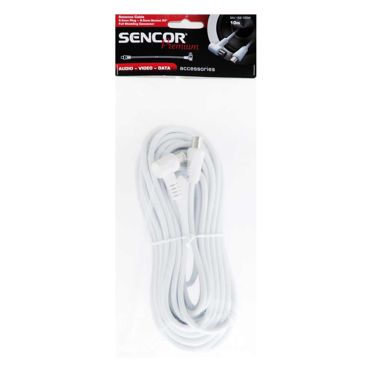 Коаксиален кабел за антена, напълно екраниран, конектор преходник 90°, дължина 10 м, бяло