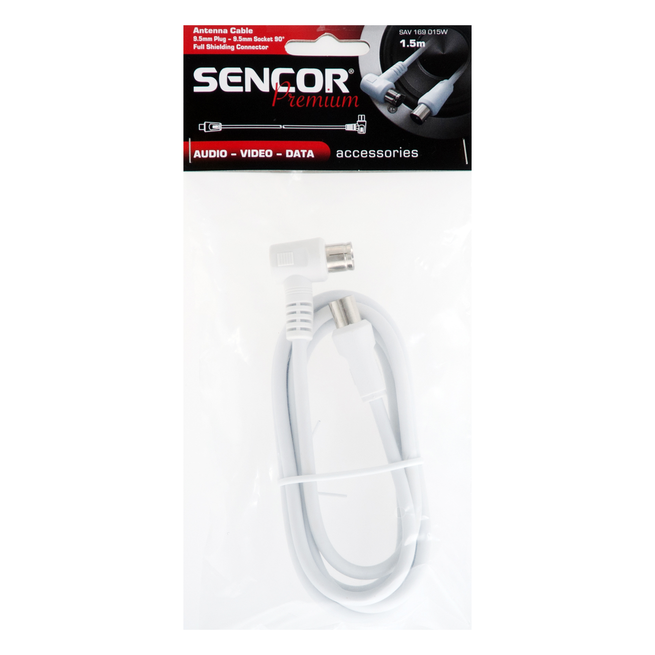 Коаксиален кабел за антена, напълно екраниран, конектор преходник 90°, дължина 1,5 м, бяло