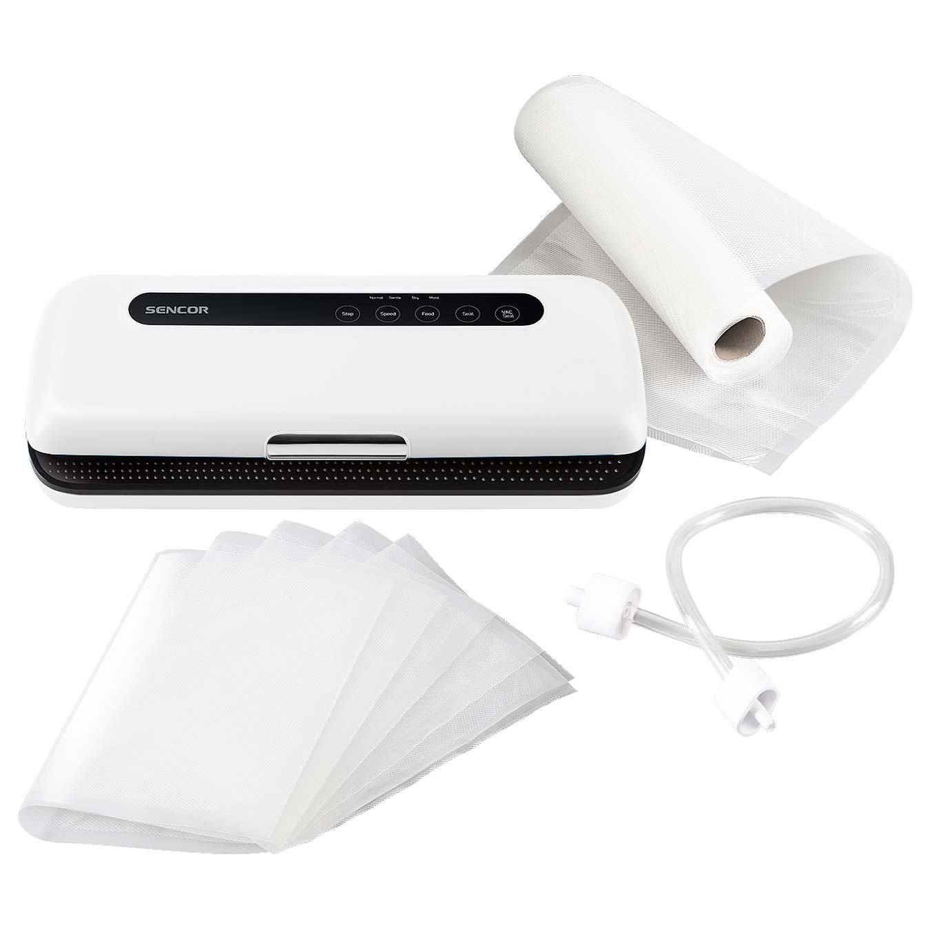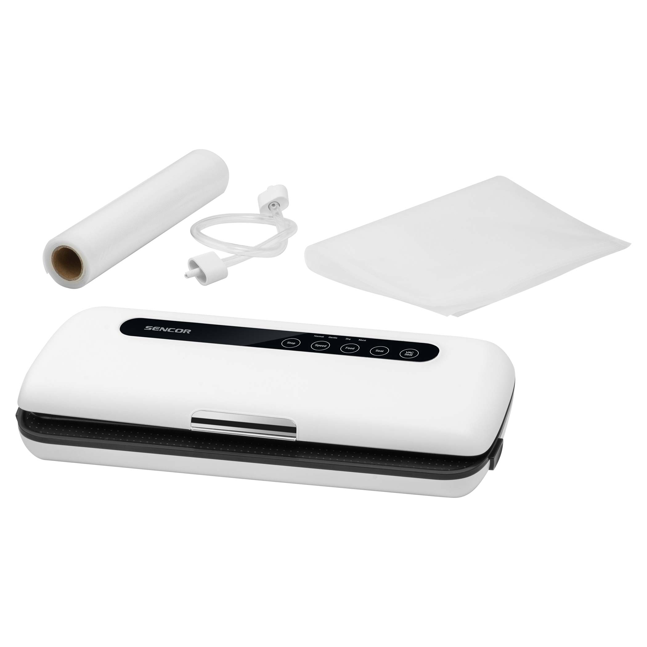 Комплектът съдържа: Уред за вакуумиране, маркуч за вакуумиране, 5 торбички за вакуумиране 20х30cm, 1 бр. фолио за вакуумиране 20x200cm.