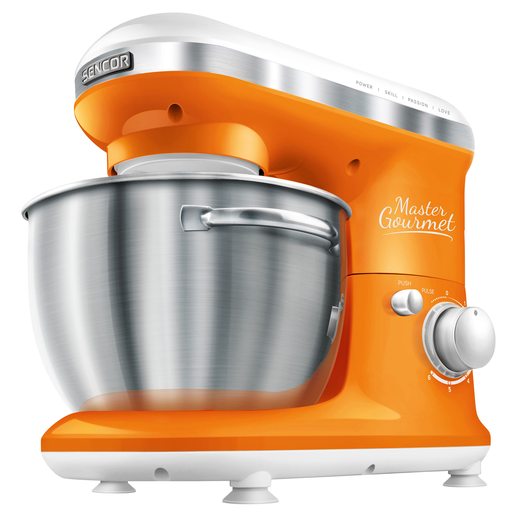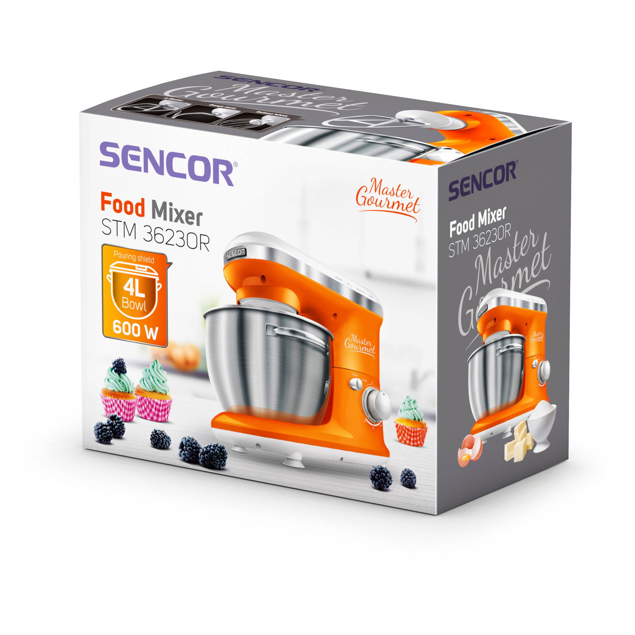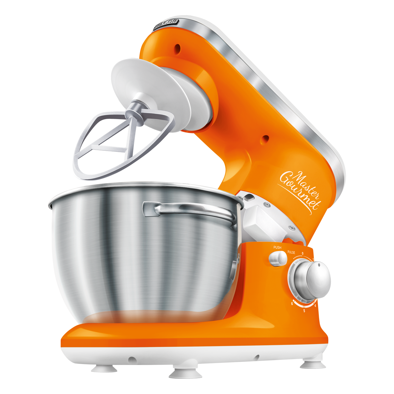4 подвижни приставки: бъркалка за тесто (за по-тежко тесто с мая), А-образни бъркалки (за сметана и леко тесто без мая), голяма бъркалка (за сметана, белтъци, и др.), протектор