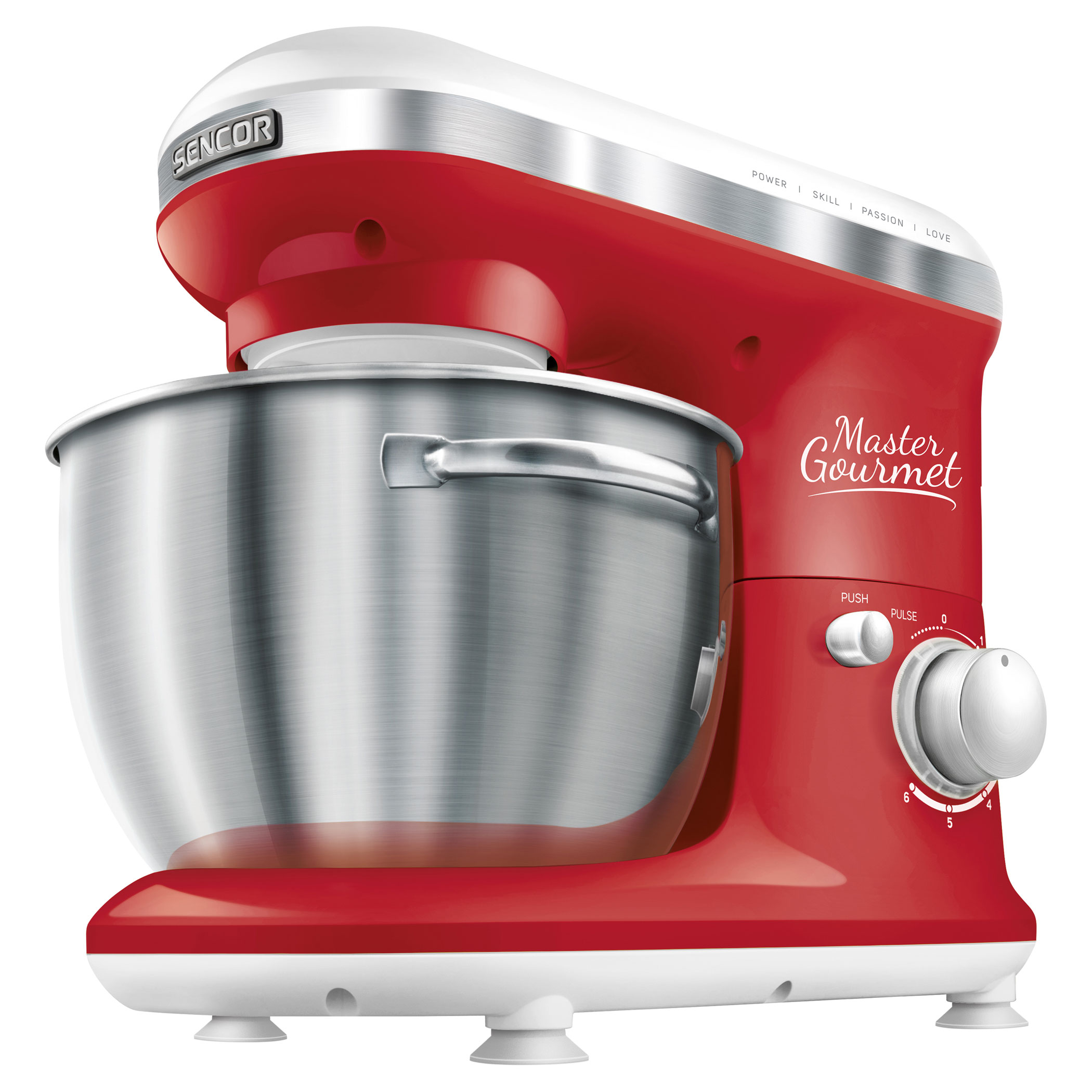 4 подвижни приставки: бъркалка за тесто (за по-тежко тесто с мая), А-образни бъркалки (за сметана и леко тесто без мая), голяма бъркалка (за сметана, белтъци, и др.), протектор