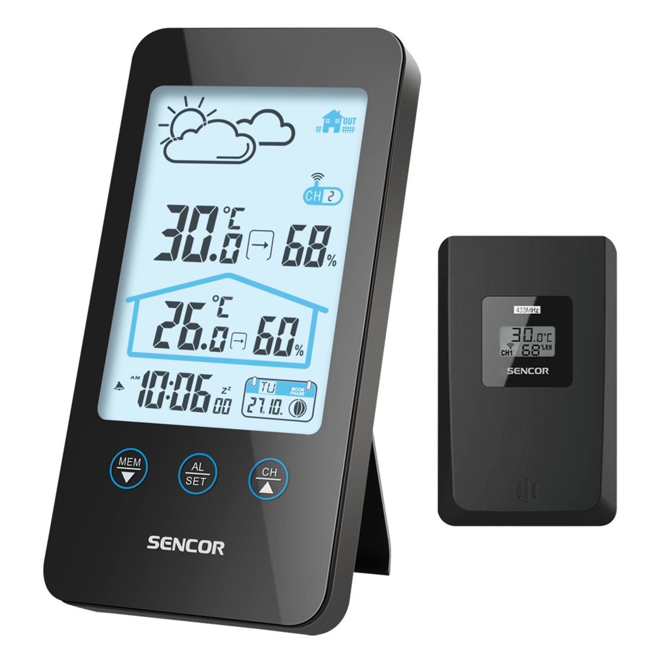 Метеорологична станция с цветен LCD дисплей, прогноза за времето, контролирана дата и час и функция за ежедневна аларма